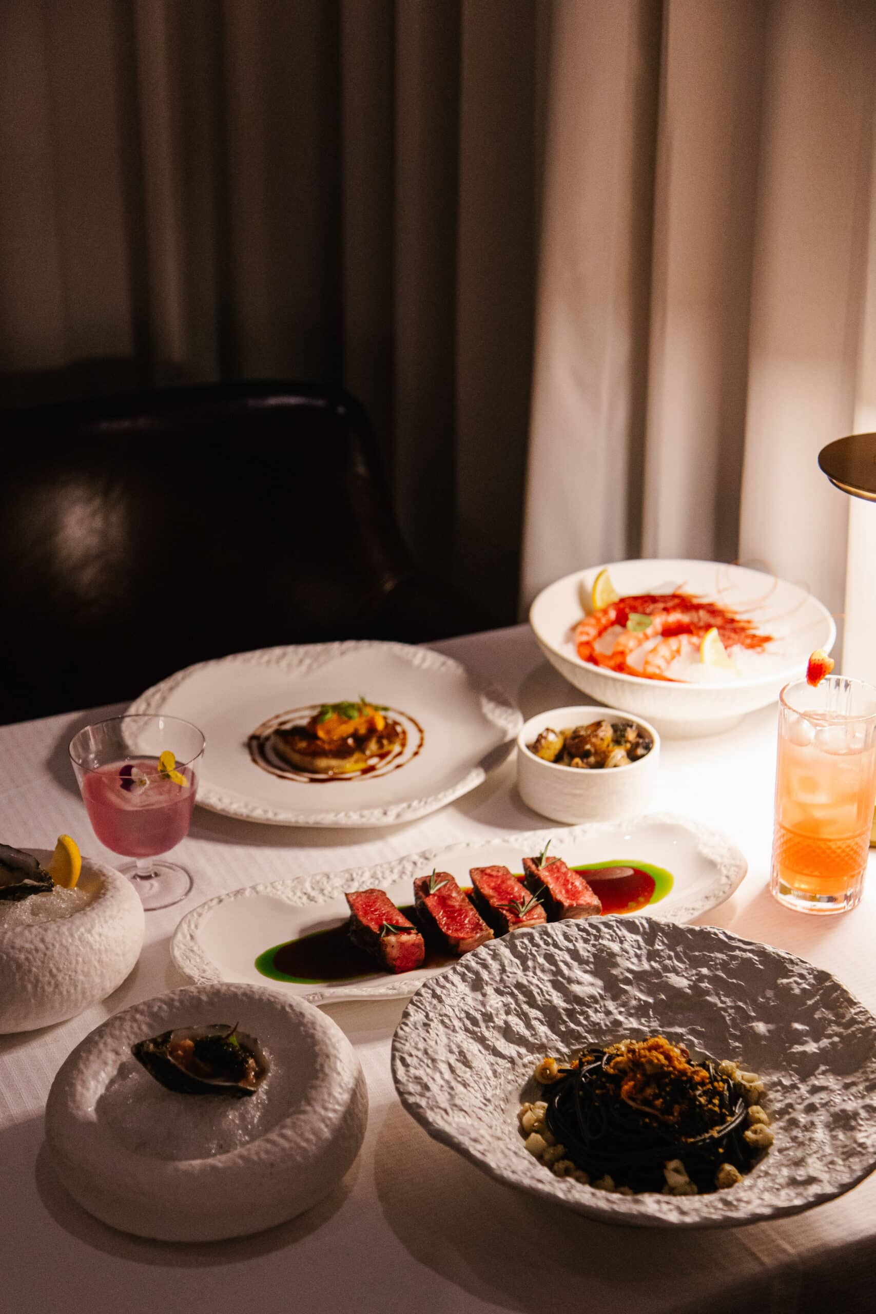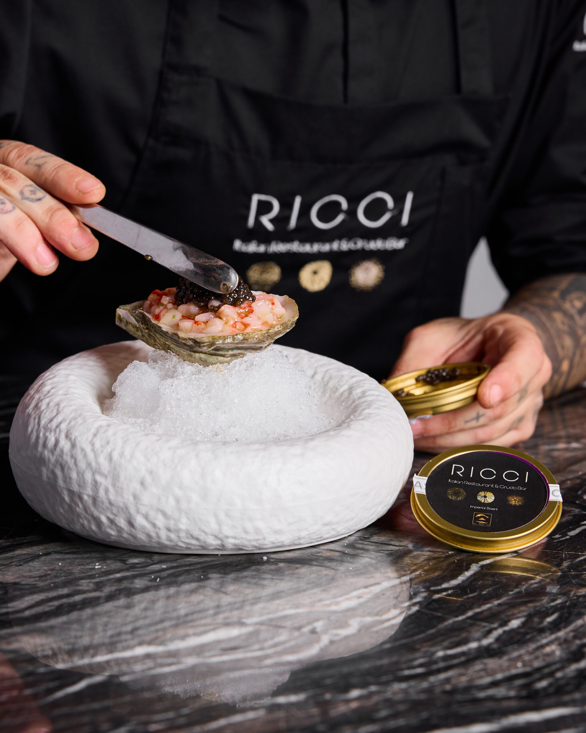The menu at RICCI celebrates the Italian tradition of Crudo—the delicate art of serving the freshest seafood raw, allowing the natural flavors to shine through. Guests can indulge in a wide variety of exquisite dishes, from the prized Bluefin Tuna prepared with Italian finesse, to the indulgent Lobster Calana, and the house signature RICCI Spaghetti, a dish that encapsulates the soul of the restaurant. Each creation is carefully crafted to highlight the vibrancy of the sea, balancing boldness with elegance.