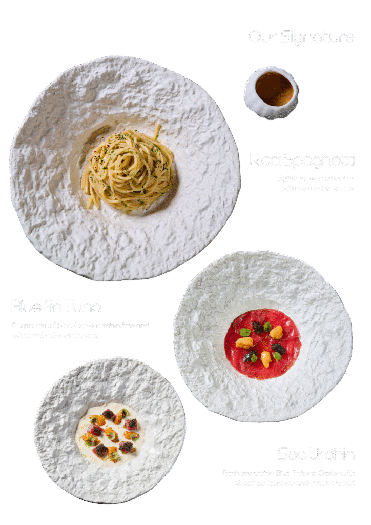 At RICCI, Chef Alessandro brings his lifelong passion for the ocean to the table, curating a seafood-driven menu that highlights both the purity of raw Italian Crudo and the elegance of fine dining. His vision is to redefine Italian seafood in Bangkok, offering guests an unforgettable taste of Italy’s coastal heritage.
